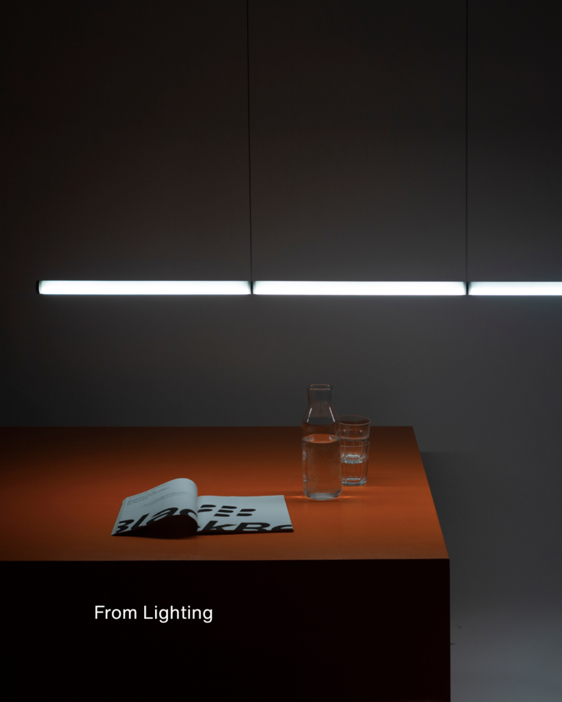 La luce viene così interpretata come elemento architettonico, capace di costruire relazioni tra oggetti, ambiente e percezione.