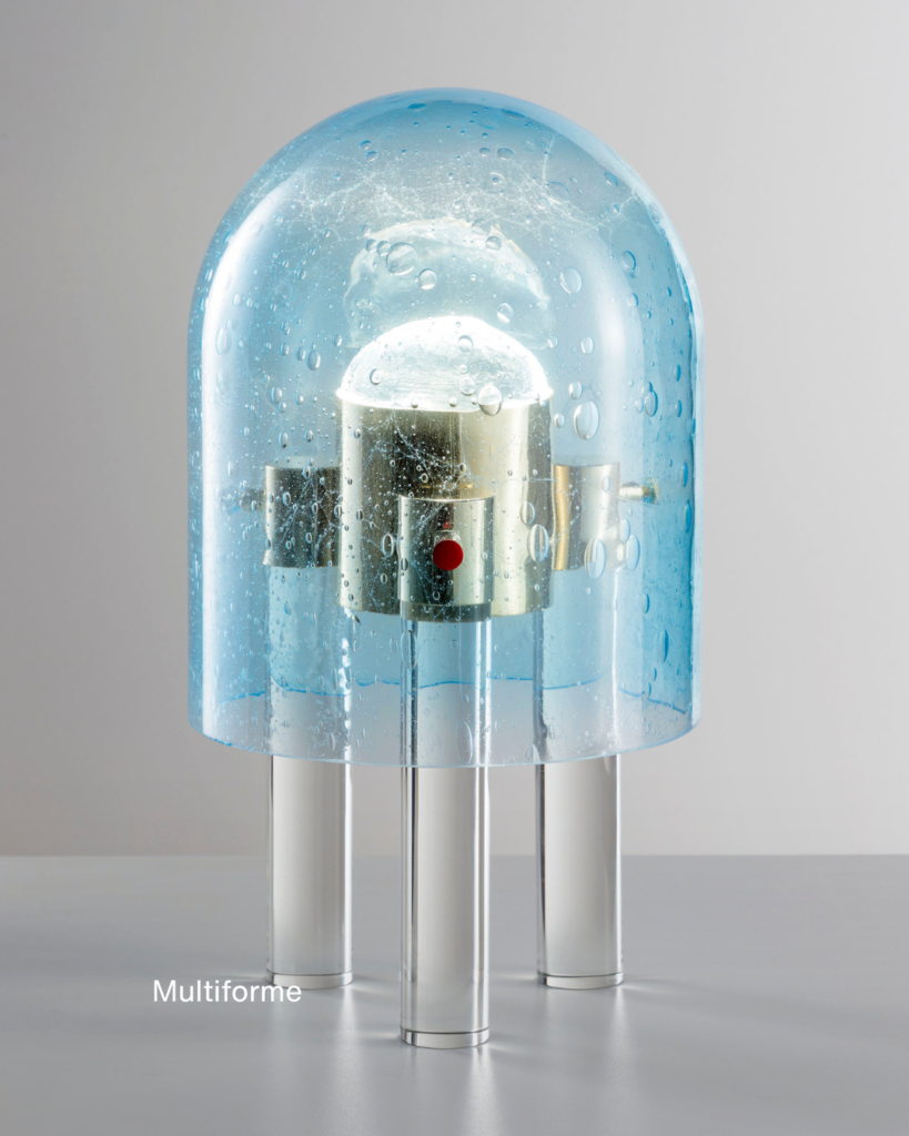 Le lampade si configurano come pezzi unici, in cui la qualità materica del vetro e il sapere dei maestri vetrai definiscono oggetti capaci di coniugare tradizione ed evoluzione del design, contribuendo a costruire sistemi luminosi che dialogano con lo spazio e con l’identità del contesto.
